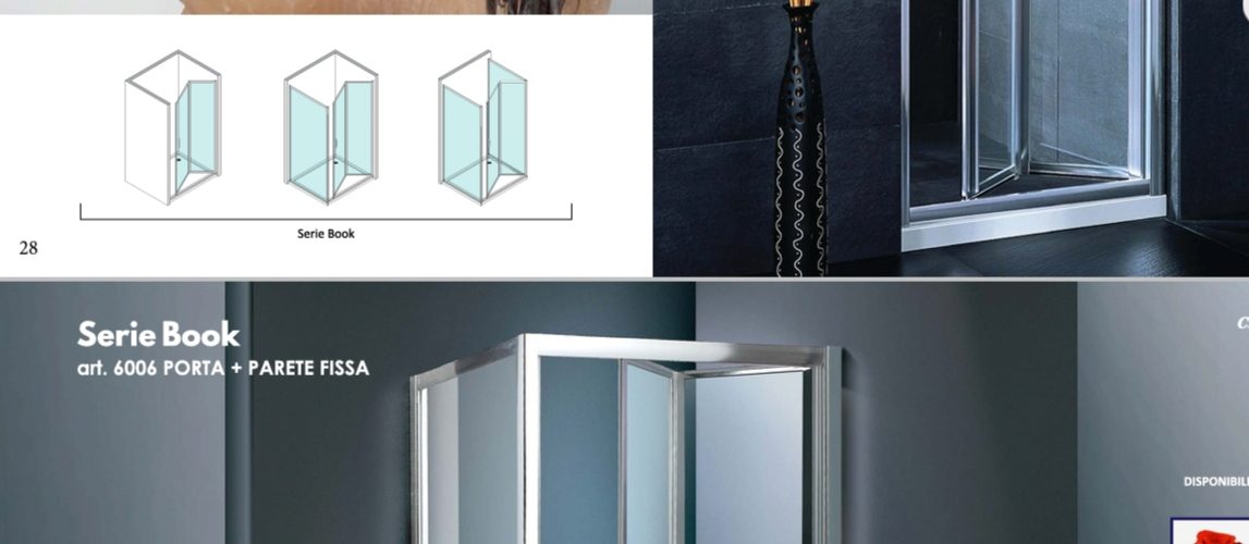 box doccia apertura a libro con profilo in alluminio cromo lucido, posizione di montaggio reversibile, vetro temperato 6 mm chiusura magnetica