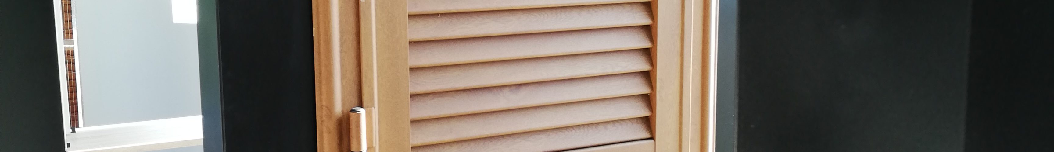 Persiane in acciaio zincato a lamelle fisse (inclinazione 30° ) o orientabili, telaio 4 lati, zoccolo di base, cerniere e rostri di sicurezza, serratura con triplice chiusura, mezzo cilindro a chiave europea, paletti di chiusura in acciaio zincato a leva, verniciatura a polvere e tinto legno.